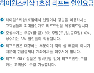 준성수기 주중(월~금) | 장비렌탈 이용시 리프트 가격 |